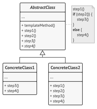 - 모든 자식 클래스는 추상 단계들을 구현해야 한다.