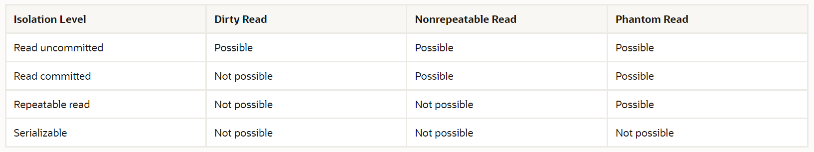 오라클에서 제공하는 Isolation Levels
